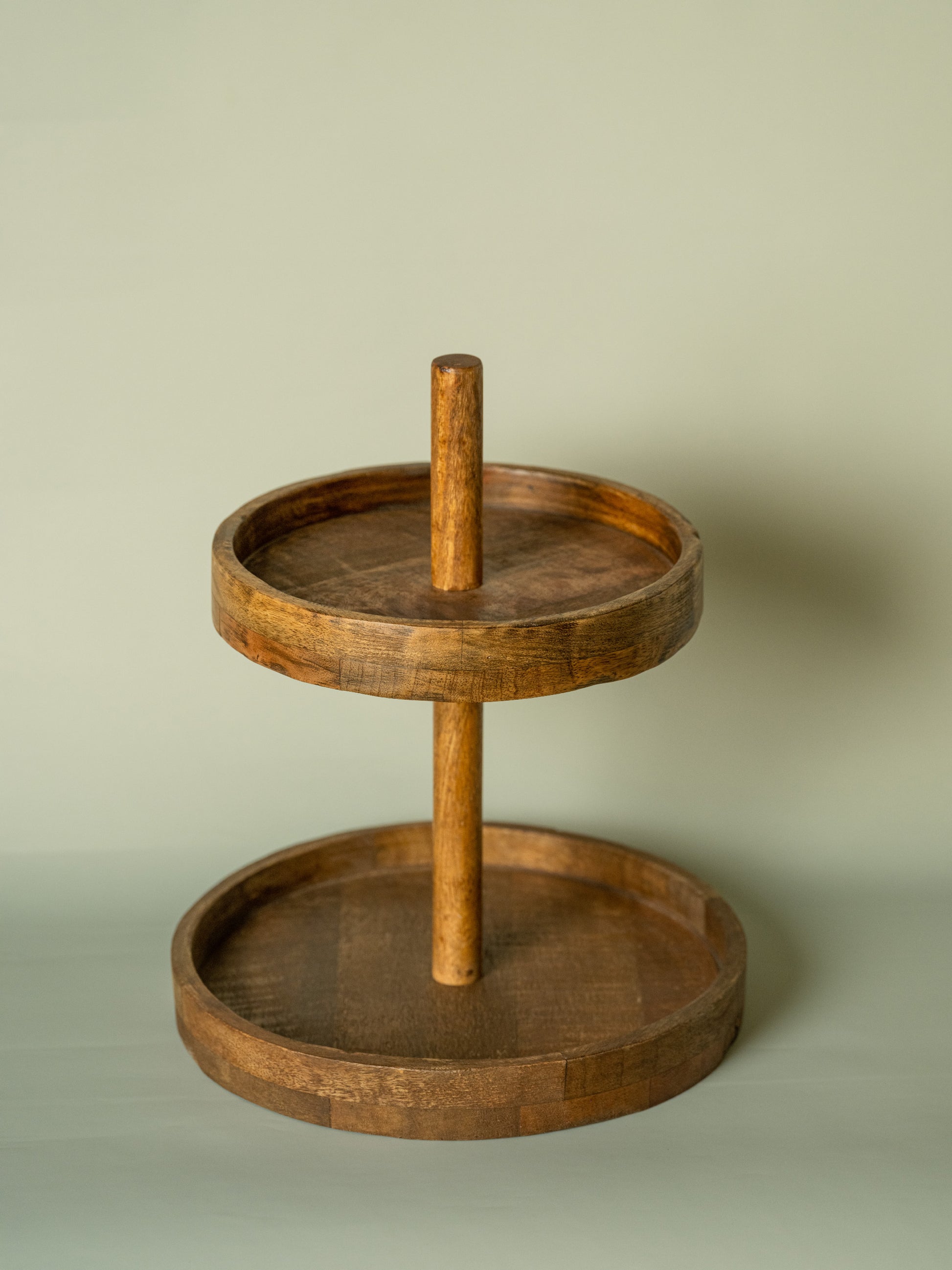 Featuring two spacious tiers, this cake stand is perfect for presenting cakes, pastries, or snacks in style. Its sturdy build and natural finish make it a versatile and elegant center piece for gatherings or everyday use.