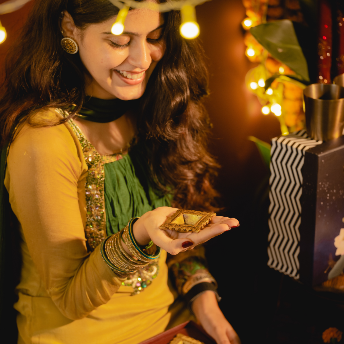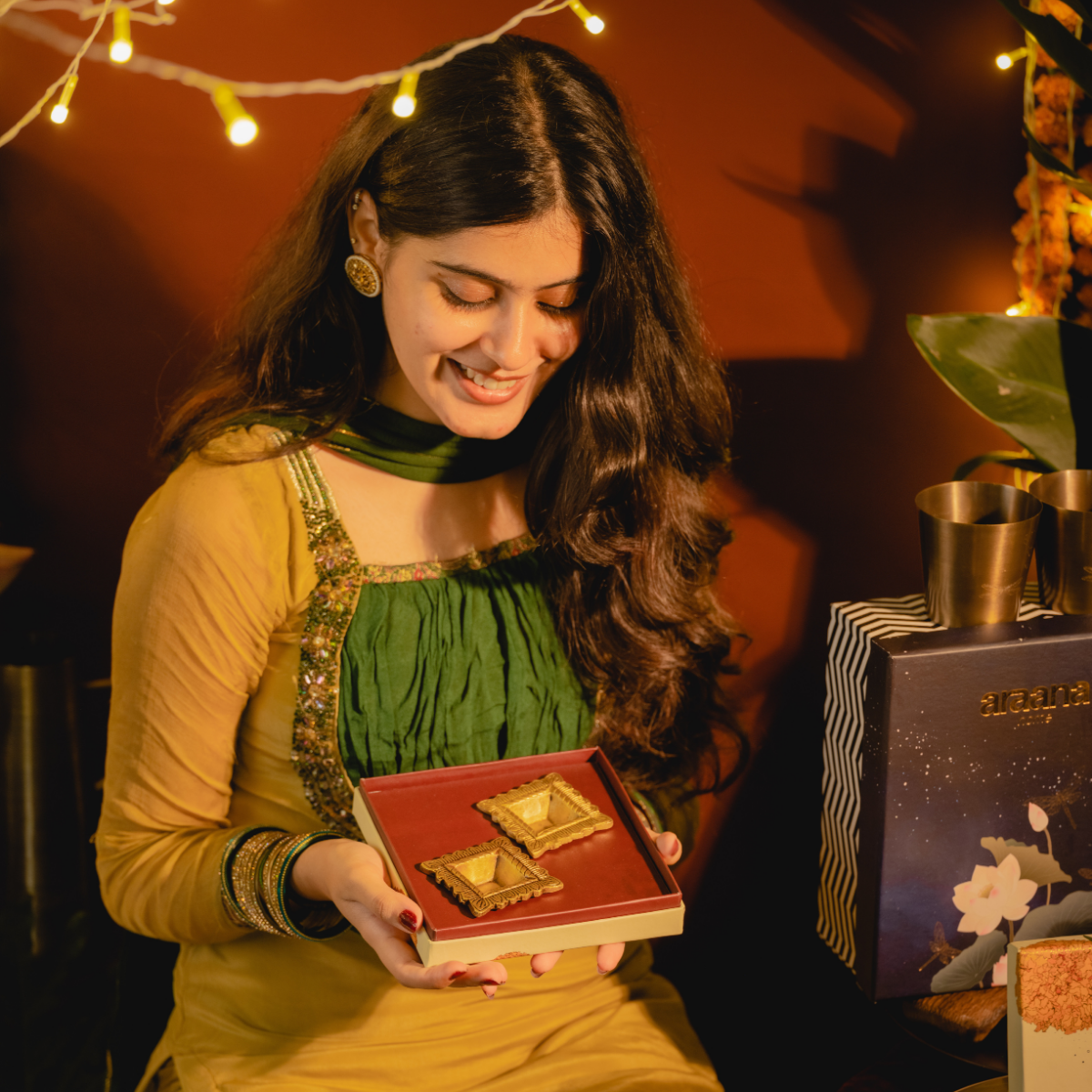 A beautiful square shaped brass diya, to add a special touch to your Diwali decor