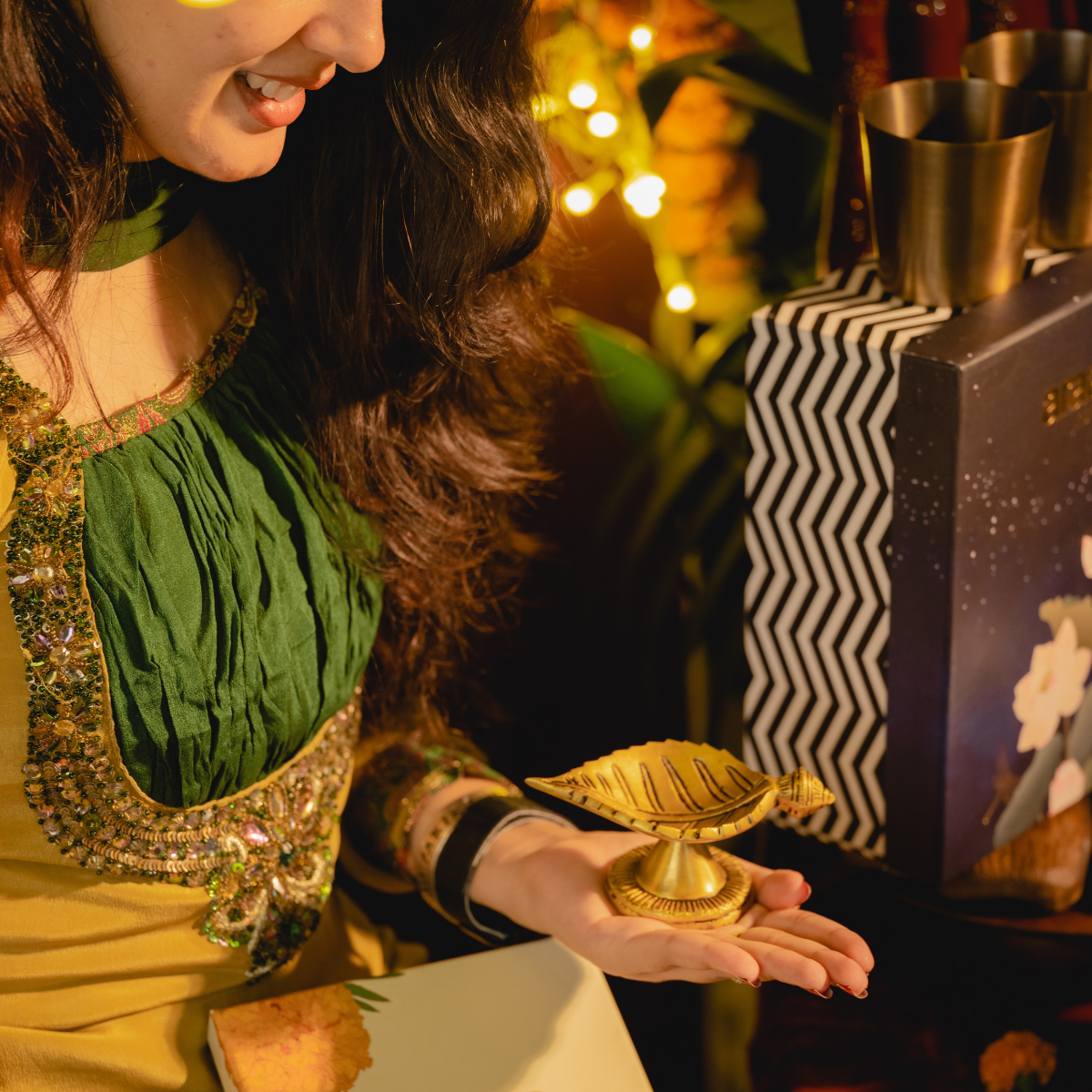 A beautiful Leaf shaped brass diya, to add a special touch to your Diwali decor